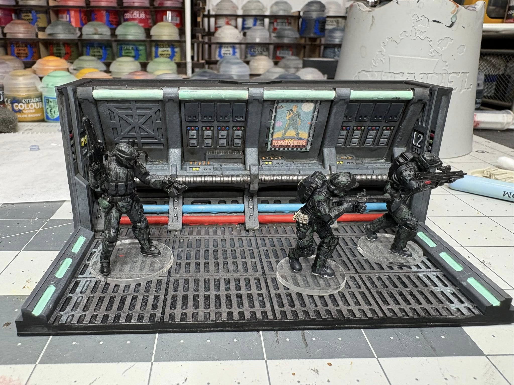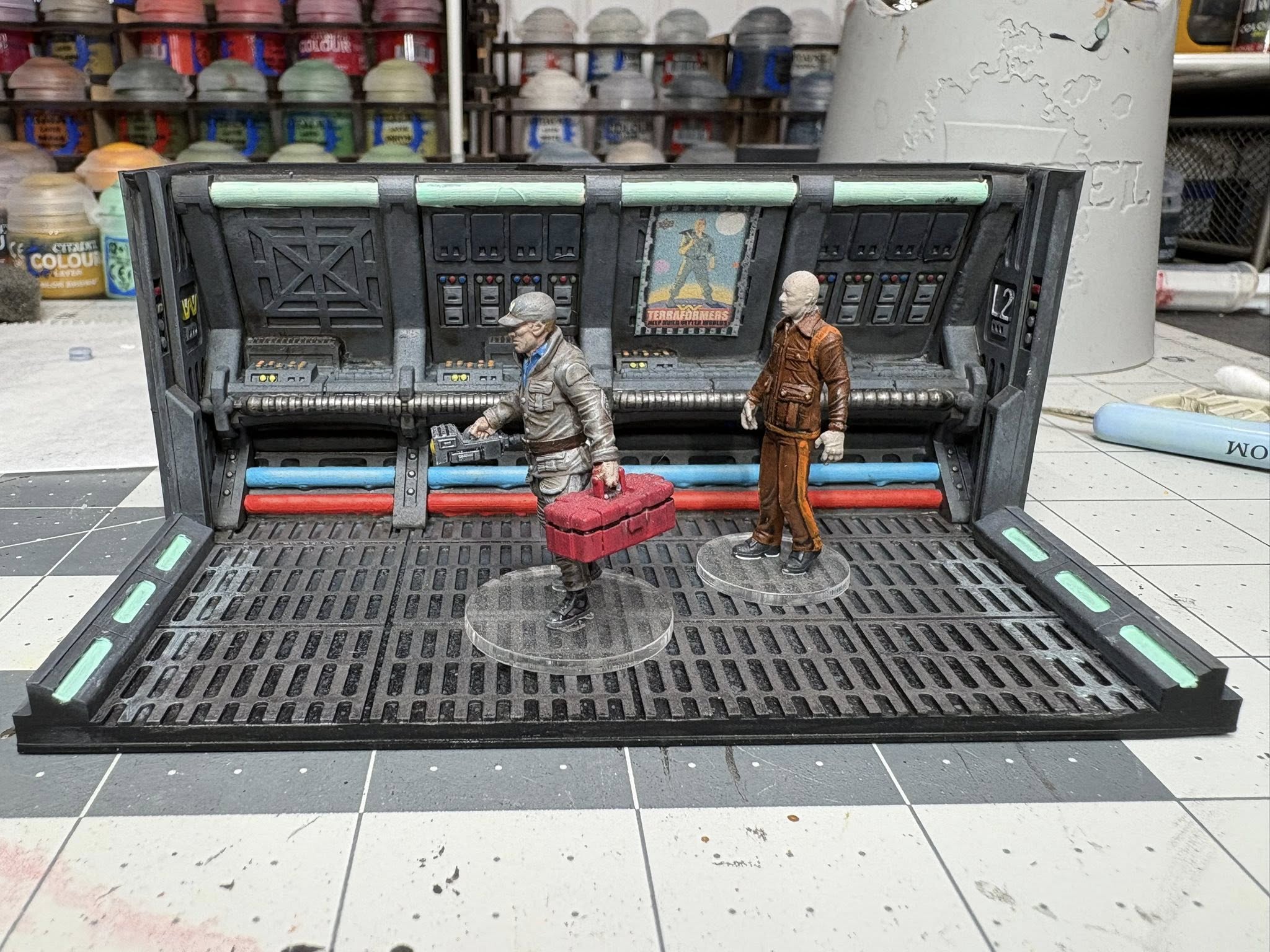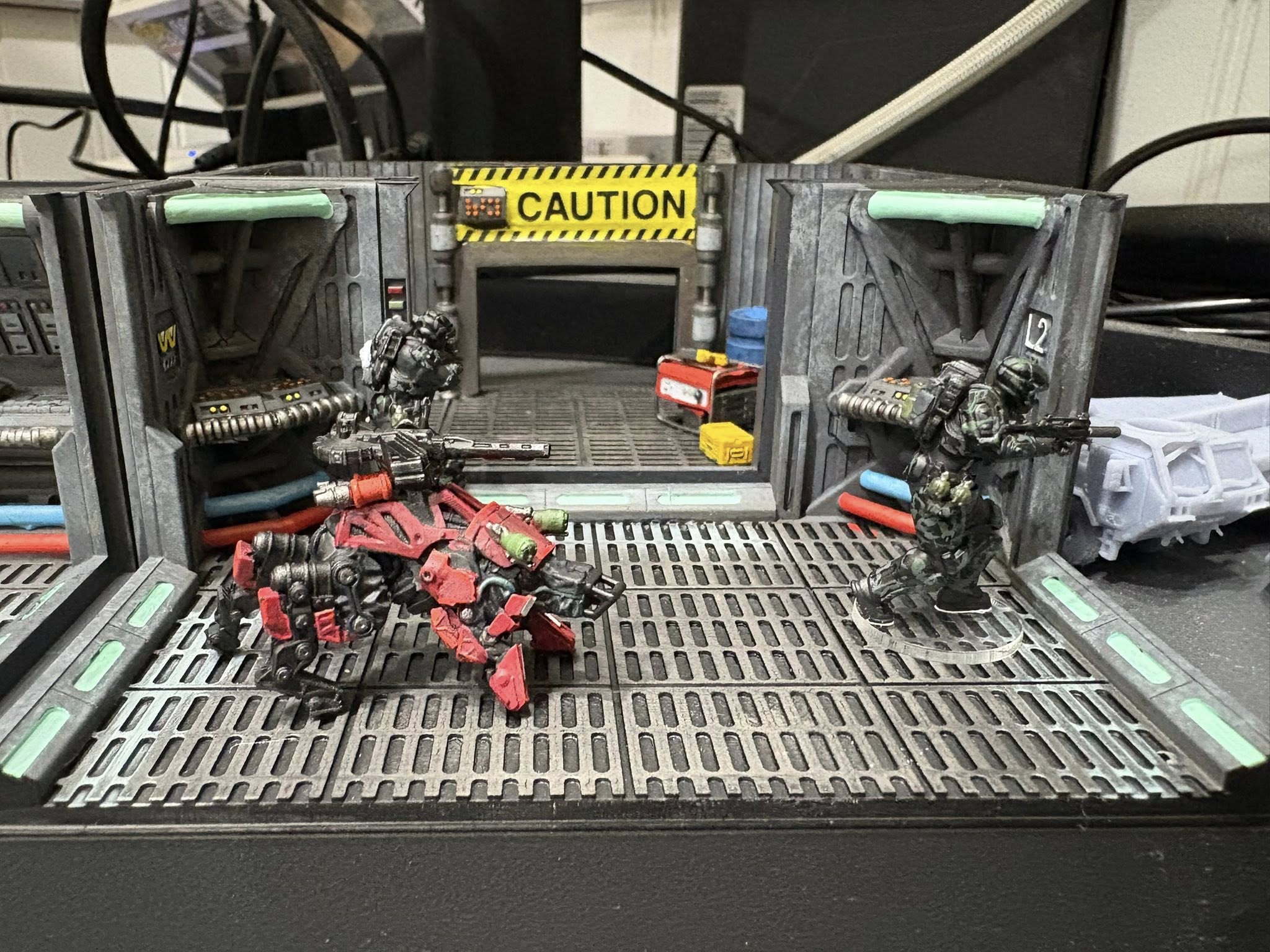 Corp Addis pushed through the blast doors into the central hub, the heart of the settlement now little more than a ruin of steel and smoke. The Captain followed, surveying the overturned crates and shattered consoles that once coordinated the colony’s lifeline.