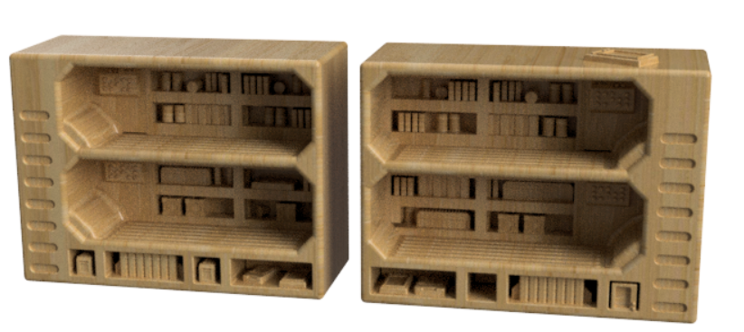 One piece tile containing all terrain features. Chairs, Beds, print separately for easier painting.